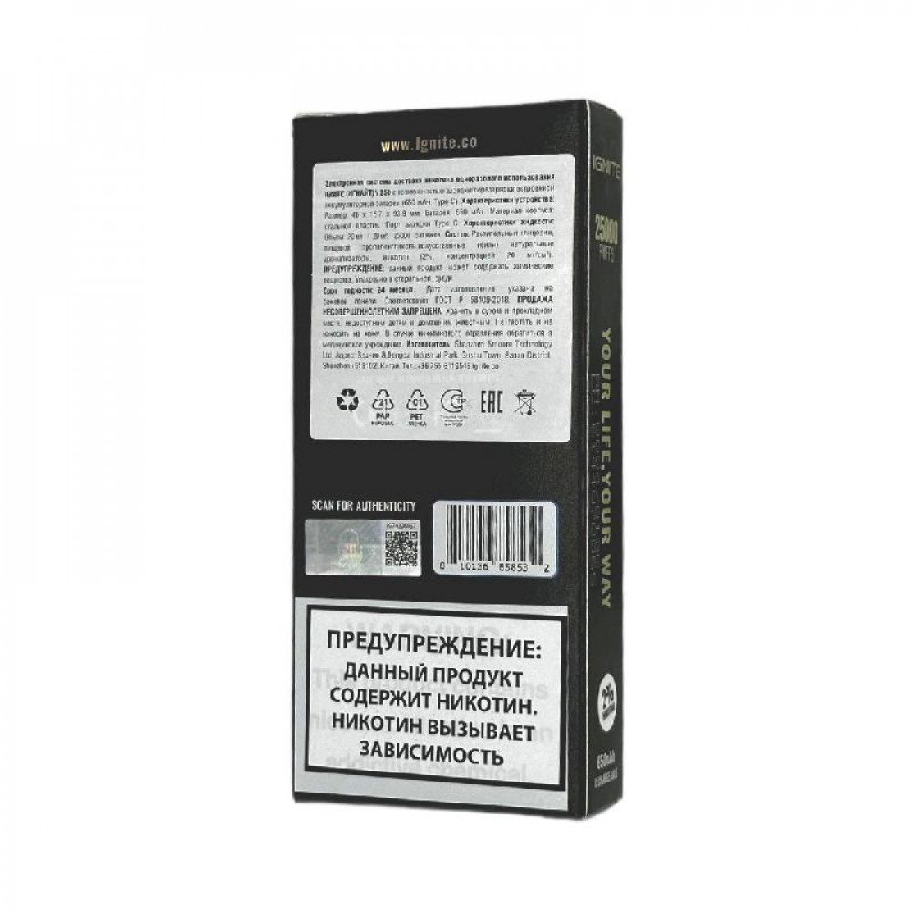 Электронная сигарета Ignite V250 Gold 25000 - Grape Ice (Виноград лёд) - купить в Угличе
