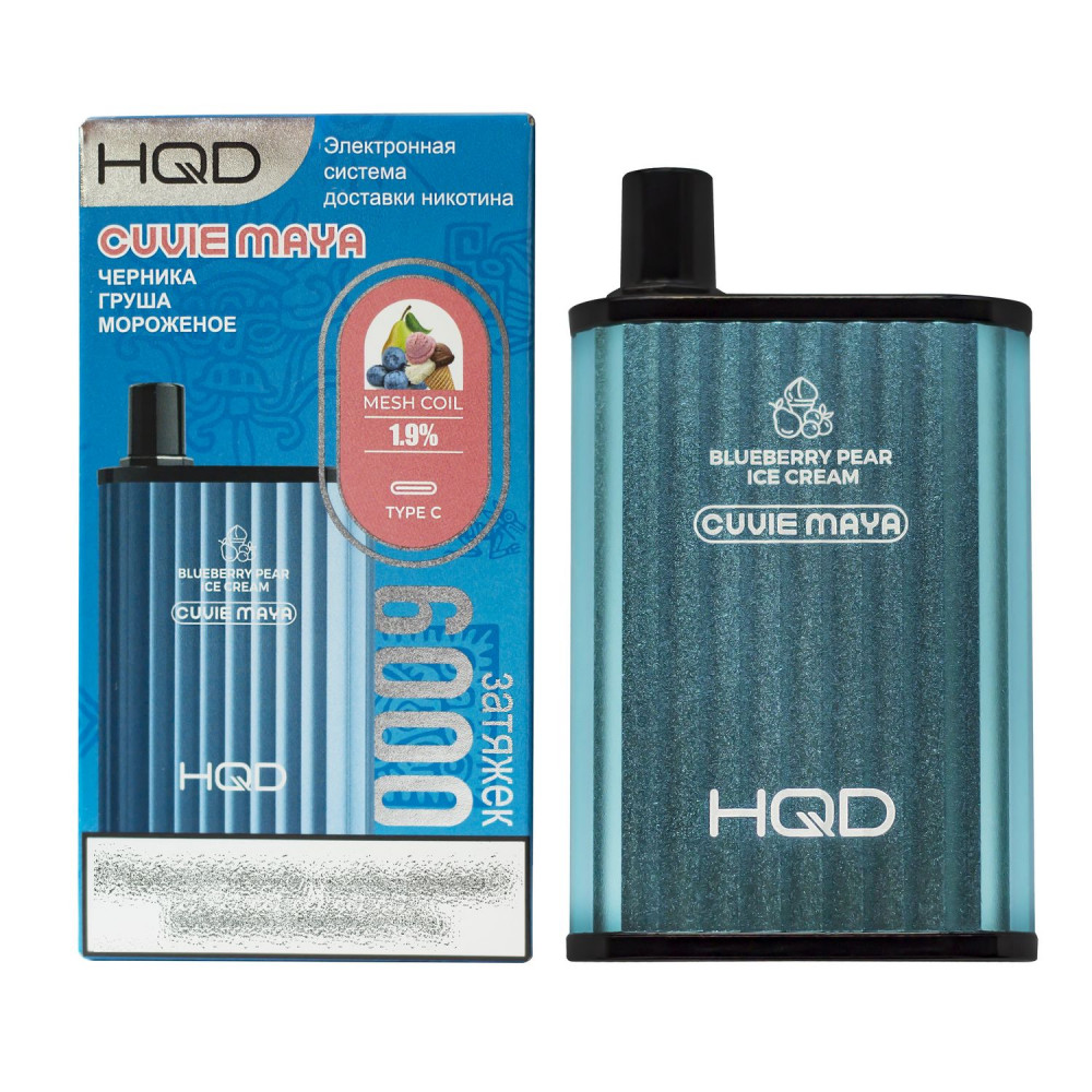 | HQD видыCuvie MAYA (Куви Мая) | HQD вкусыЧерника Груша Мороженое | HQD количество в блоке5 шт |